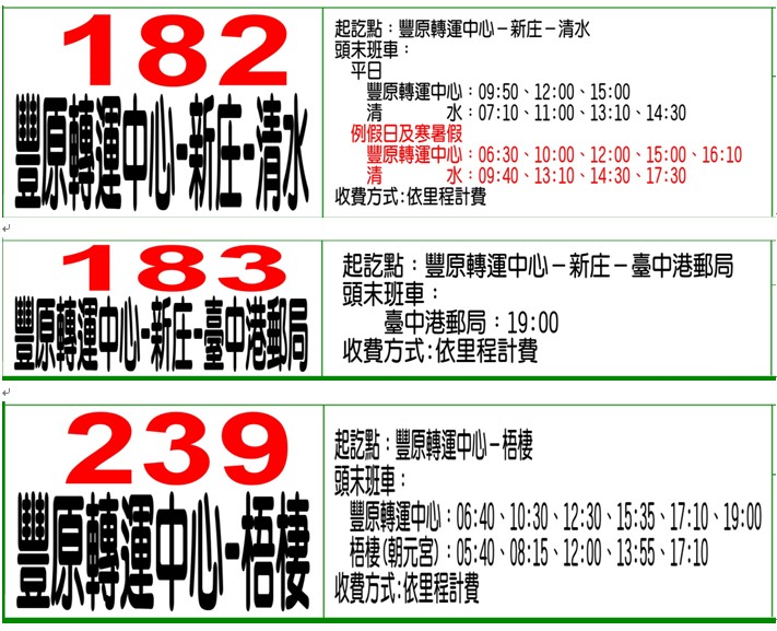 起,調整班次時刻如下,不便之處,敬請見諒。